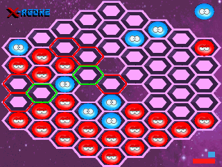 This is an Unix adaptation of the SC hexxagon, at least for the look and the characteristics. With, more, a cool and nice humour. The author, the french Michaël d'Auria says that X-agone is a mind game on Unix, made in C on X11, in 1995, with his friends Gontran Baerts and Jeff Devret (the group BDCreator).