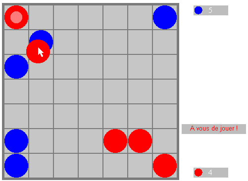 This Dynamic Html and JavaScript Ataxx has two version one for human against human, one for human-computer. Christophe Lamarque (France) also made a JavaScript Reversi a little before.