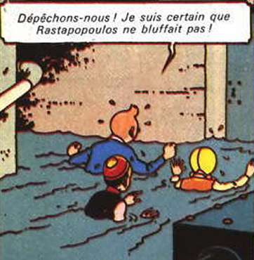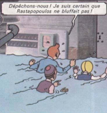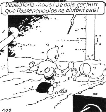 Il y a une explication au fait que cette adaptation n'ait jamais été reprise en album. Elle n'était pas bonne, tout simplement. Bourrée d'incohérences. J'avais publié un article à ce propos à l'époque dans mon modeste fanzine, relevant toutes les incohérences. Je vais fouiller mes archives pour voir s'il ne s'est pas trop ringardisé. De même, je dois avoir, quelque part, au grenier, dans une des quelques dizaines de caisses, une petite boîte avec la totalité des strips patiemment découpés dans "Le Soir". Si je les retrouve, j'en publierai des extraits dans l'espace Hergé d'Univers BD. Vous pourrez juger sur pièces. Mais patience! |