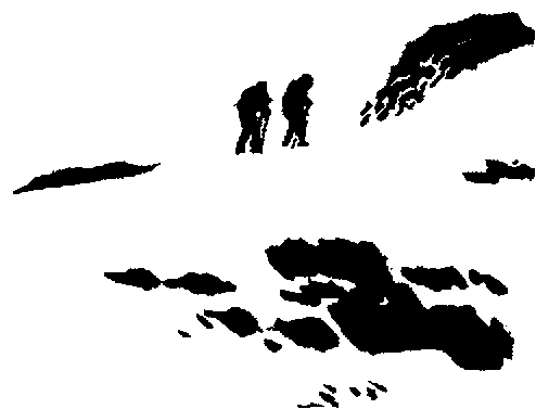 En face trois illustrations (reprises ici, deux ci-dessus, une ci-dessous) avec une légende : « Trois techniques différentes : la plume, le pinceau, le "double tone" (papier présensibilisé sur lequel on peut faire apparaître une trame en passant un révélateur au pinceau) »