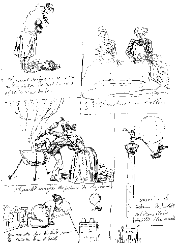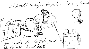 Cette page de titre est aussi annotée, en bas à gauche : « Ne se vend pas à Paris », ce qui semble être une boutade (parodie d'une mention ordinaire à l'époque). Il est très peu probable que ce fut édité. C'est seulement à ce manque de "reproduction" qu'on peut lui retirer la qualification de bande dessinée, car par ailleurs tout y est, l'enchaînement des cases, le narration, le mariage du texte et des images, les mouvements... Il y a même un côté fantastique avec un homme-poisson et un singe-homme. Et pour les "centenaristes" partisans acharnés du ballon, il y a de nombreuses cases qui en ont un !!...