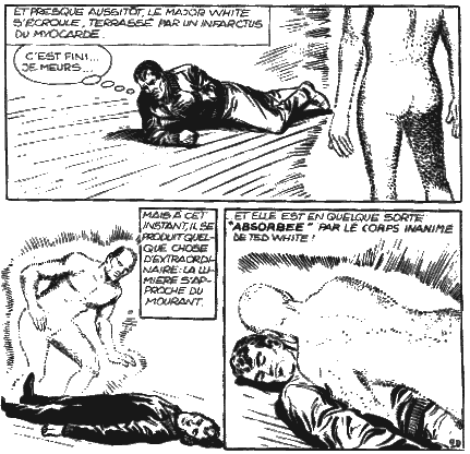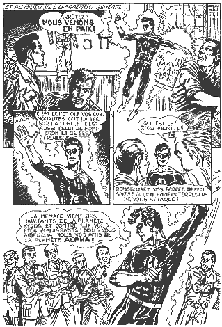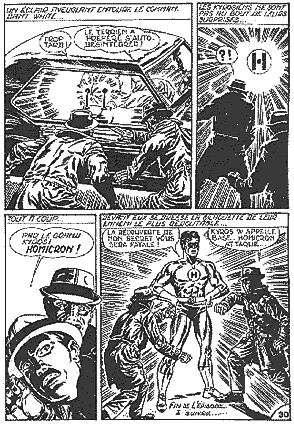 Homicron est un alien de la planète Alpha, dont les habitants ont le pouvoir de se transformer en êtres d'énergie pour explorer le cosmos. Pour sauver Ted White, un astronaute américain dans sa capsule spatiale, Homicron s'incarne en lui alors qu'il va mourir. Il "rentre" alors sur la Terre qu'il découvre, jusqu'à l'amour de Rita Tower, qui a eu quelques difficultés à s'habituer à son nouveau Ted White . C'est par elle qu'il découvre qu'un transformateur d'énergie peut le transformer en super-héros (à la mode Green-Lantern) pour combattre le mal. Un jeune latino-américain, Domingo, devient son assistant. L'histoire reste incomplète, alors que les envahiseurs alien de la planète Kydos sont encore sur terre. Homicron a-t-il réussi à sauver la Terre ? |