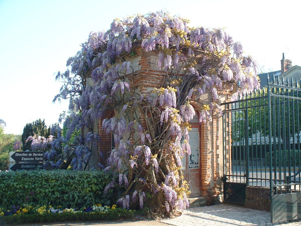 Afin que ce symbole végétal soit de nouveau présent à l'entrée du parc, de nouveaux pieds vont être plantés sur des supports indépendants du bâtiment et, s'agissant d'un jardin botanique, ces glycines seront choisies dans deux espèces différentes : l'une, la glycine de Chine étant lévogyre (ses tiges volubiles s'enroulent vers la gauche), l'autre, la glycine du Japon étant dextrogyre (tiges s'enroulant vers la droite). |