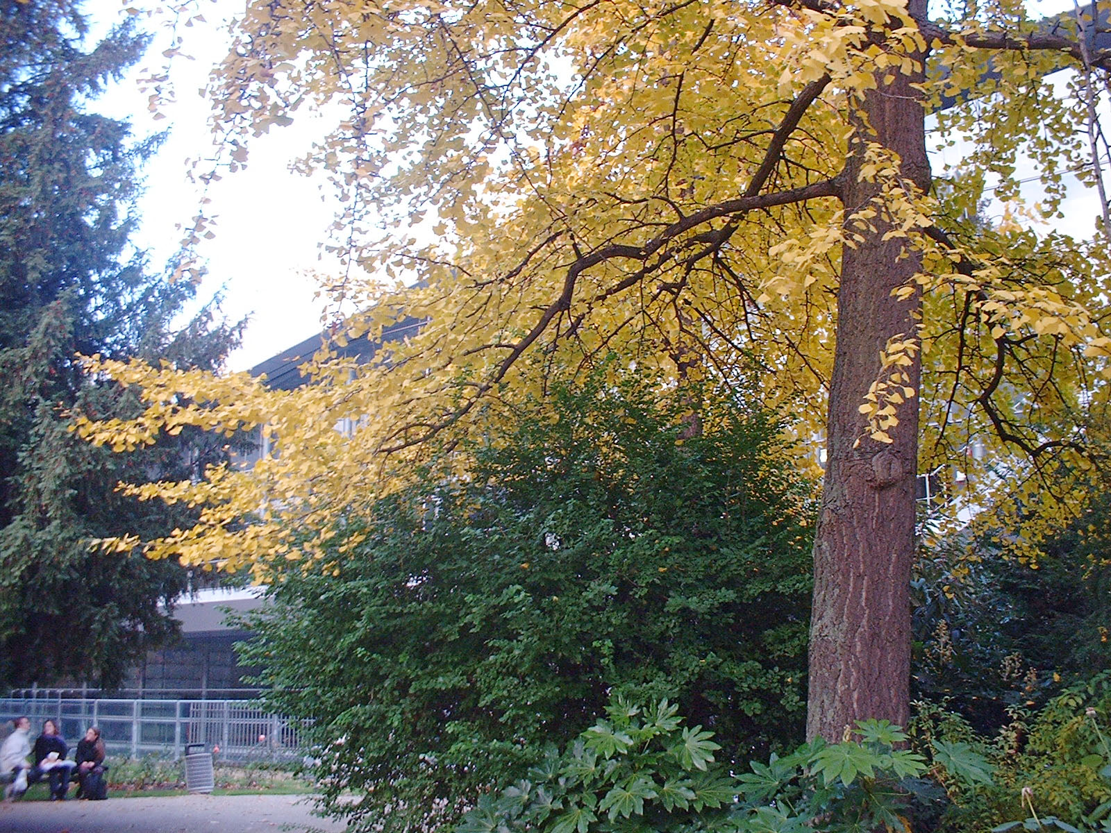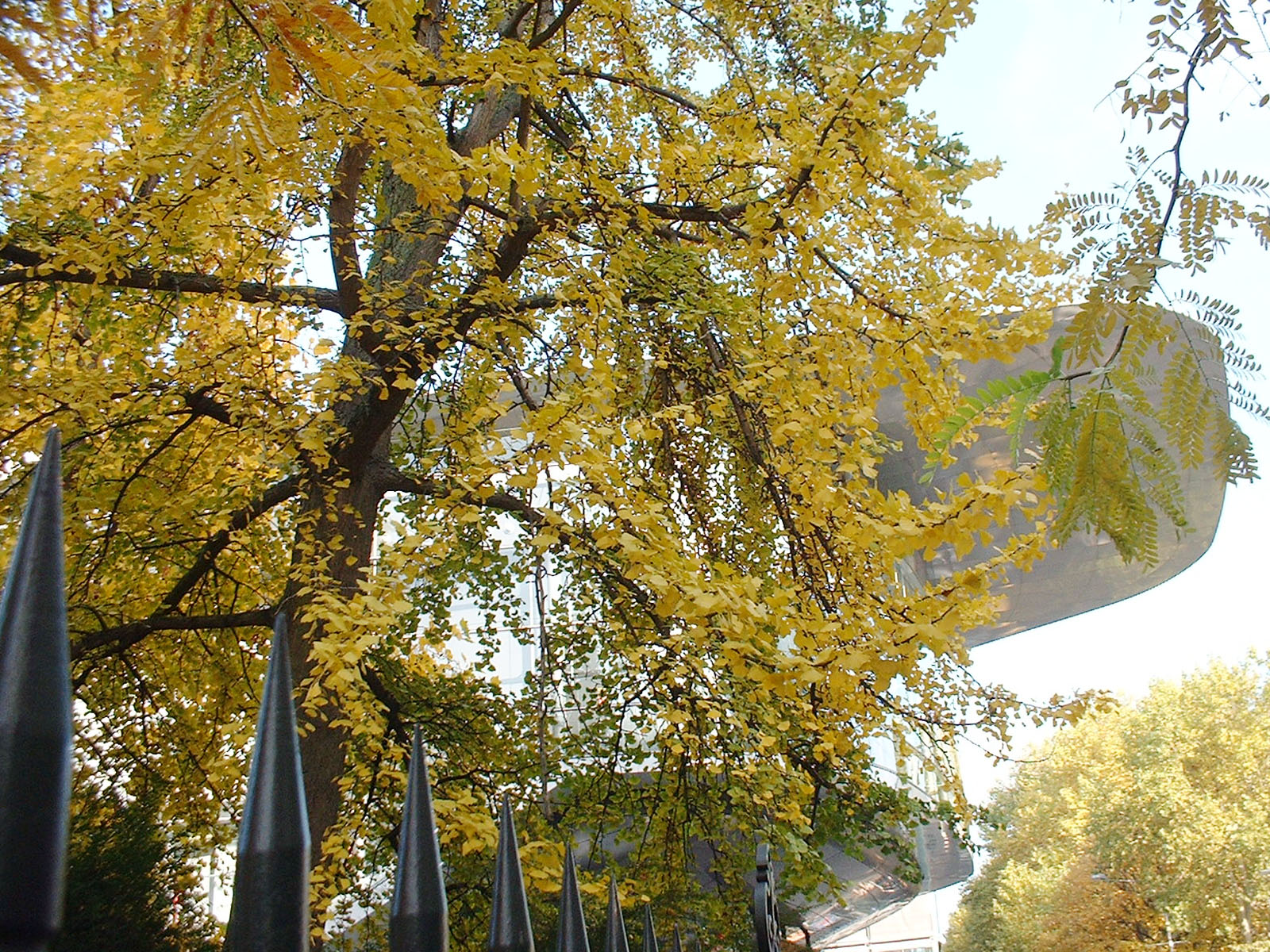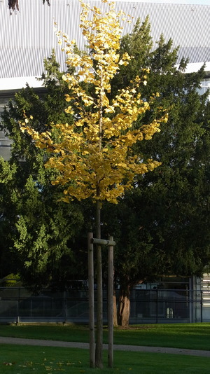 Vous trouvez ici une page sur les gingko biloba de Tours et de Touraine. Le plus beau d'entre eux, et sans doute le plus beau de France, est celui de l'entrée du jardin botanique à Tours. En voici une photo. C'est un arbre mâle avec une branche greffée femelle. Et Roger Bonneau (cf. l'article de La Nouvelle République) se souvient que c'est d'une pousse sous cette branche que provient le ginkgo qui a été abattu...