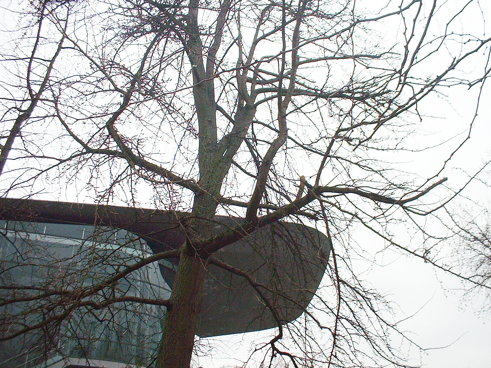 Voici une galerie de photos de cet arbre abattu. Son harmonie avec l'architecture du Vinci était remarquable. L'élan de ses branches se mariait avec les reflets et les courbes de la masse élégante du Vinci. Et c'était un arbre jeune, cette beauté ne pouvait que s'affirmer, il serait probablement devenu un arbre remarquable. Cliquez sur les vignettes pour les voir en meilleure résolution.
