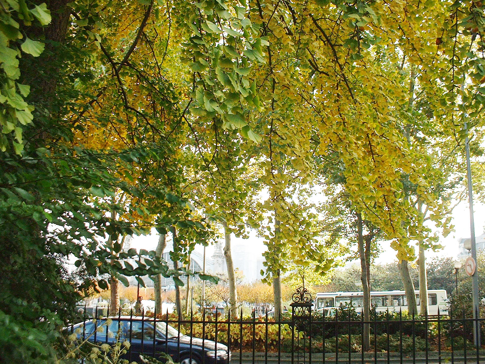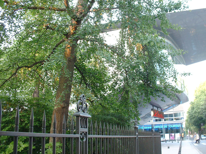 Car comment font donc les autres municipalités ? Il n'est pas rare que des ginkgo biloba femelles se trouvent le long d'une chaussée. Je peux donner au moins trois exemples où il y en a vraiment beaucoup, puisqu'il s'agit de toute une rangée de ginkgos placés le long de la voie publique, plusieurs dizaines d'arbres dont un sur deux environ sont des arbres femelles, avec les mêmes inconvénients. L'esplanade de la bibliothèque François Mitterand à Paris. L'avenue de Reille à Paris (avec des abri-bus, voir la photo ci-contre). La gare routière à la sortie de Juvisy sur Orge, qui jouxte une des plus grandes gares ferroviaires de l'île de France (là, il n'y a que sept ginkgos, mais c'est un endroit très passager). Et comment font les Chinois et les Japonais, là où les ginkgos femelles sont davantage appréciés que les males, justement à cause de leurs fruits ? (Tokyo compte environ 65.000 Ginkgos, soit 16% des arbres d'ornement des espaces publics de la ville)