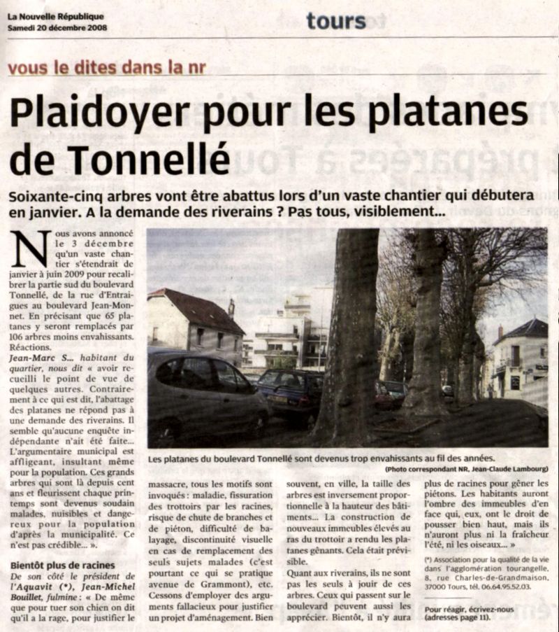 Avec en bas de cette page l'abattage des 65 platanes centenaires du boulevard Tonnellé.