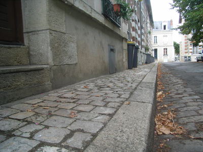 Il m'apparaît probable qu'il n'ait même pas été envisagé d'enlever les pavés et de le remettre de façon plus ordonnées... Ou de faire comme en face de l'église du Sacré-Coeur (rue de la Fuye) des frises rappelant leur présence (ci-dessous)...