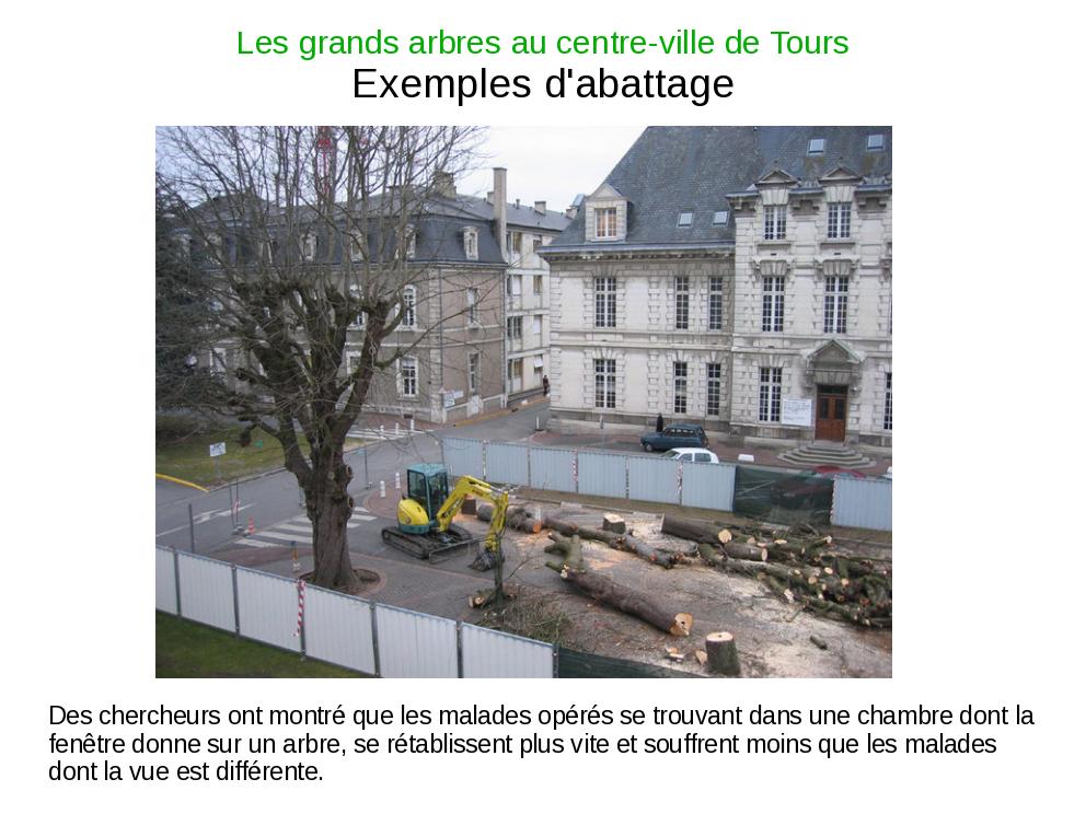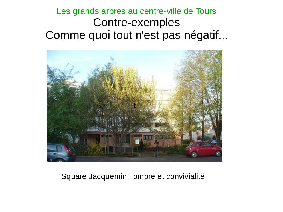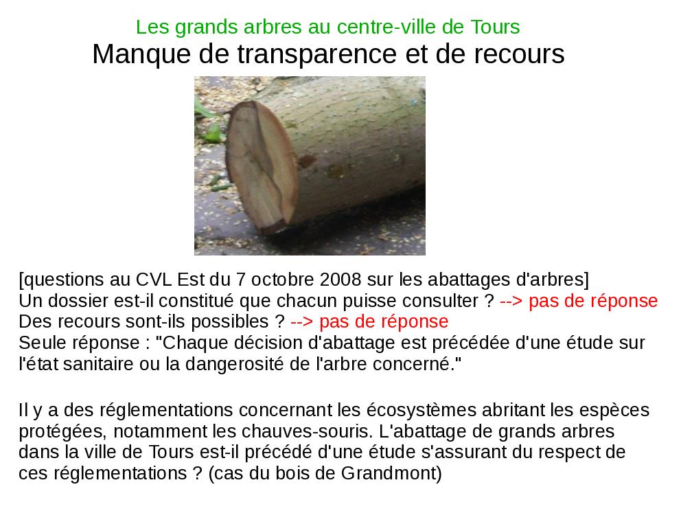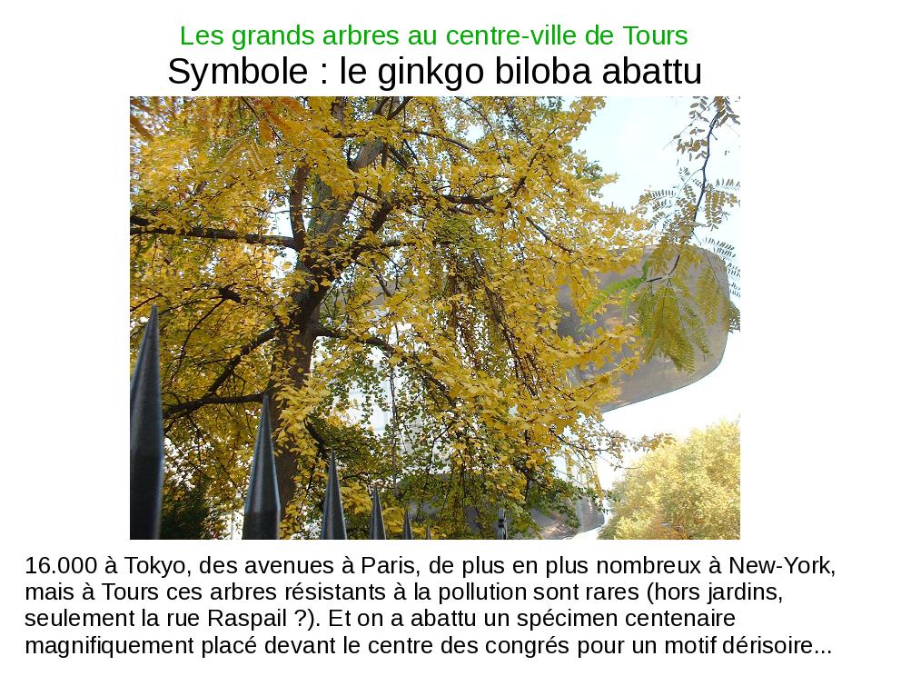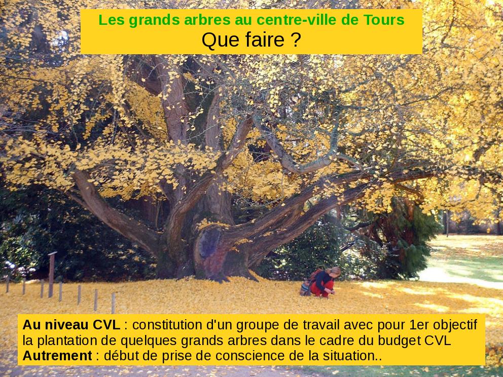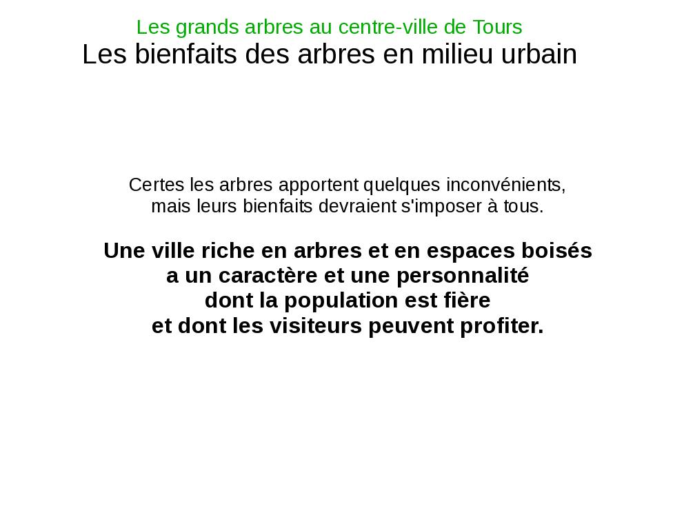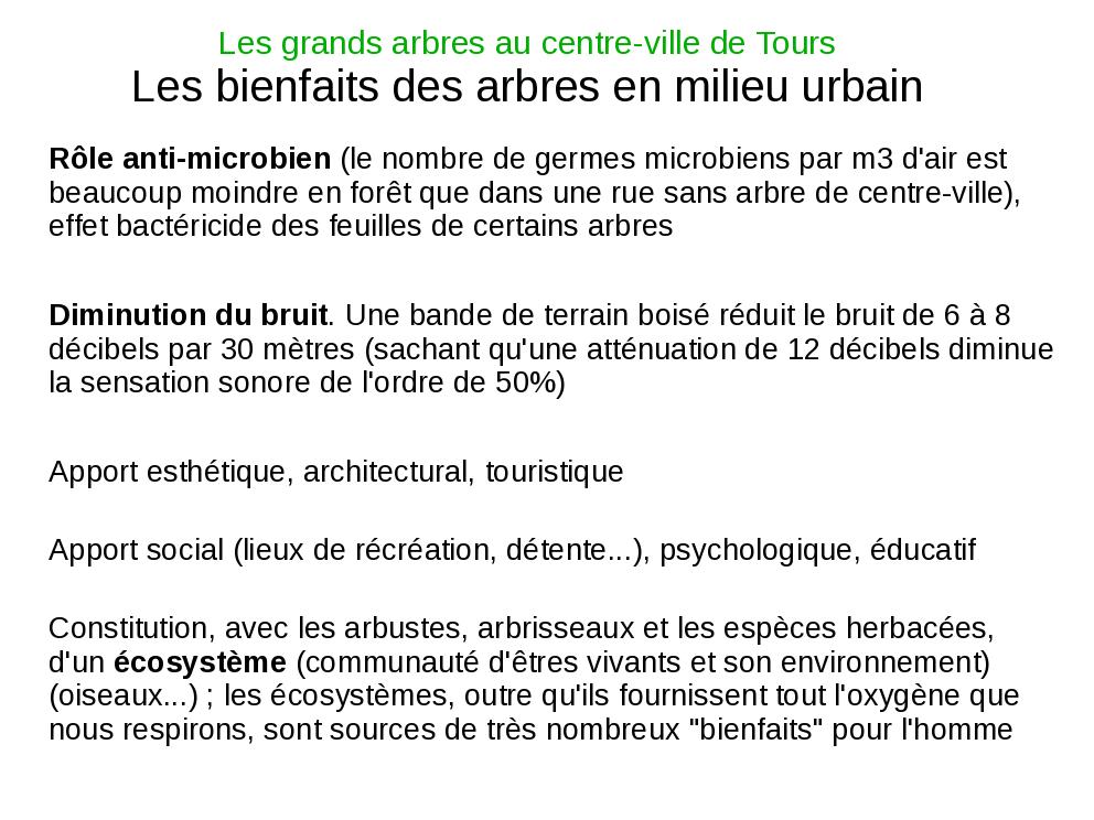 Voici le diaporama que je devais présenter lors de la réunion du Conseil de la Vie Locale de Tours Est du 18 juin 2009. Il reprend bien sûr les principaux élements exposés sur ma page des Grands arbres, ainsi que d'autres provenant de l'Encyclopédie Hachette des arbres.