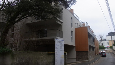 Il y a déjà, juste sous le coin bas à gauche (sud-ouest), le collège Léonard de Vinci, qui, à cause de son enclavement, amène un manque chronique de stationnements automobiles, et aussi des problèmes de circulation cycliste et piétonne (pas de passage sécurisé pour que les collégiens aillent au stade des Tourettes). Mais ces bas soucis matériels sont accessoires pour la mairie, l'essentiel est ailleurs. Trois immeubles doivent être construits prochainement dans cet îlot et un autre requalifié. Avec des constructions comme celle voisine ci-dessous à gauche, sur 4 étages. Cela amènera un déséquilibre avec les petites maisons individuelles voisines. Et ce n'est qu'une première tranche... Pourtant voyez ci-dessous à droite la profession de foi angélique du Plan Local d'Urbanisme pour ce quartier.