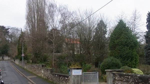 Ci-dessus (photo prise à l'emplacement de la croix bleue du plan de début de page), un des trois immeubles prévus, de presque 30 logements, sera situé au fond (à l'emplacement de la croix jaune), rue de la Pierre, derrière les arbres, là où il n'y en a plus, certes. Mais il faut un accès voiture par l'entrée voisine déjà existante (en bas à droite), et pour cela il faudra abattre des arbres et en premier lieu les grands peupliers qui pourtant forment un bon rideau de verdure pour protéger les petites maisons individuelles en contrebas du futur immeuble en hauteur, sur quatre étages. Je rappelle que les peupliers tourangeaux sont victimes d'un massacre depuis 20 ans et que la mairie utilise le moindre prétexte pour continuer leur éradication. Pourtant, ils sont bien utiles dans une configuration telle que celle-là, à supposer que cet immeuble voit le jour.