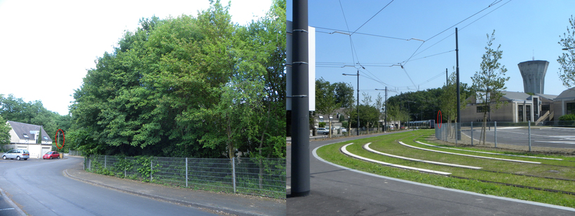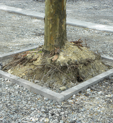 Il n'a pas supporté tout cet environnement minéral... Ailleurs, de nombreux sujets plantés sont morts et des rescapés d'avant sont mal en point... Bilan arbres du tramway |