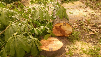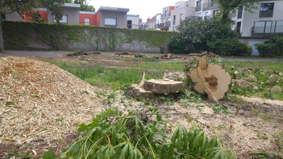 Il reste exceptionnel d'être averti d'un futur abattage. En voici une illustration avec celui d'un très beau maronnier, et de quelques autres arbres, dans le jardin de la villa Rabelais, où est installée la cité de la gastronomie. Est-ce pour mettre en place un parking ? Voici quelques images.