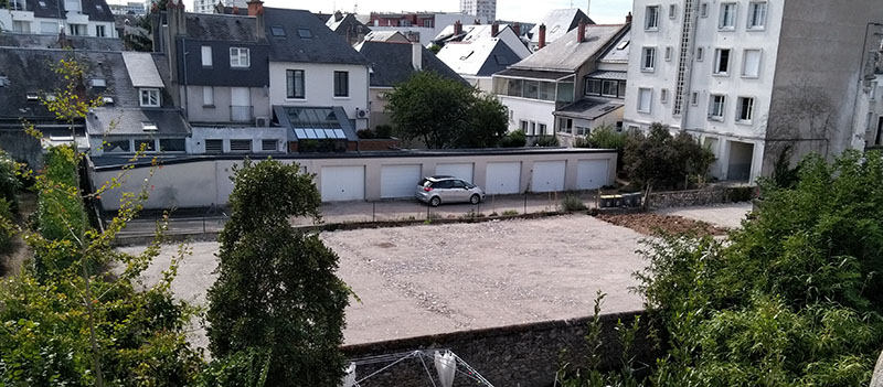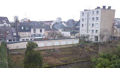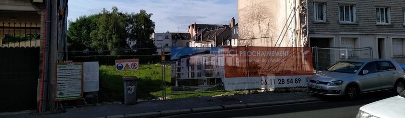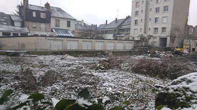 Nous sommes à Tours, dans le quartier Velpeau, entre voies ferrées et autoroute A10, lieu pollué, presque sans espace vert public. Les espaces verts privés sont donc précieux et méritent d'être sauvegardés. C'est d'ailleurs ce que voulait en 2011 le commissaire-enquêteur du PLU (Plan Local d'Urbanisme) de Tours en obligeant à "Conditionner la construction sur une même parcelle publique ou privée au maintien de l’îlot de verdure, s’il existe". La mairie avait refusé. Ce même PLU a comme priorité (PADD) d'étendre la trame verte sur la ville. Le SCoT de l'agglomération tourangelle exige en 2013 qu'on défende la biodiversité. Et que fait-on pour appliquer ces règles ? On supprime 1000 m2 d'espace vert, apparemment la plus grande destruction de jardin dans le quartier Velpeau depuis les années 1950.