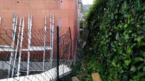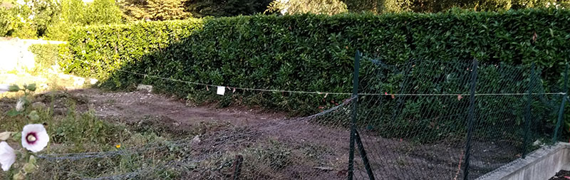 Le jardinier de la parcelle 354 avait commencé à tailler sa haie, comme il le fait chaque année à la même époque, quand les ouvriers sont venus comme s'ils étaient chez eux, en enlevant une partie du grillage puis en commençant à installer leur échafaudage au fond du passage d'entretien de la haie. Heureusement, ils ont remballé leur matériel.