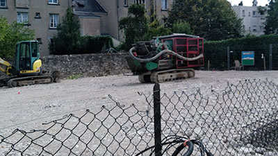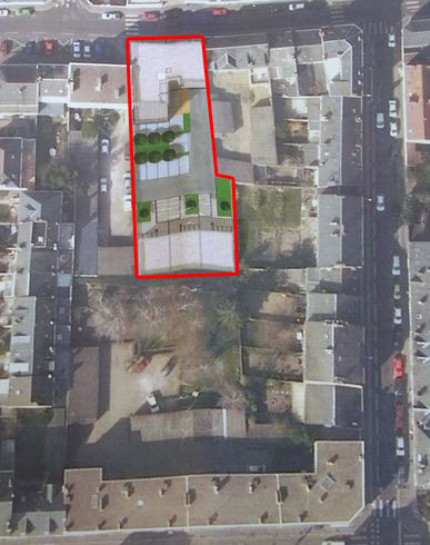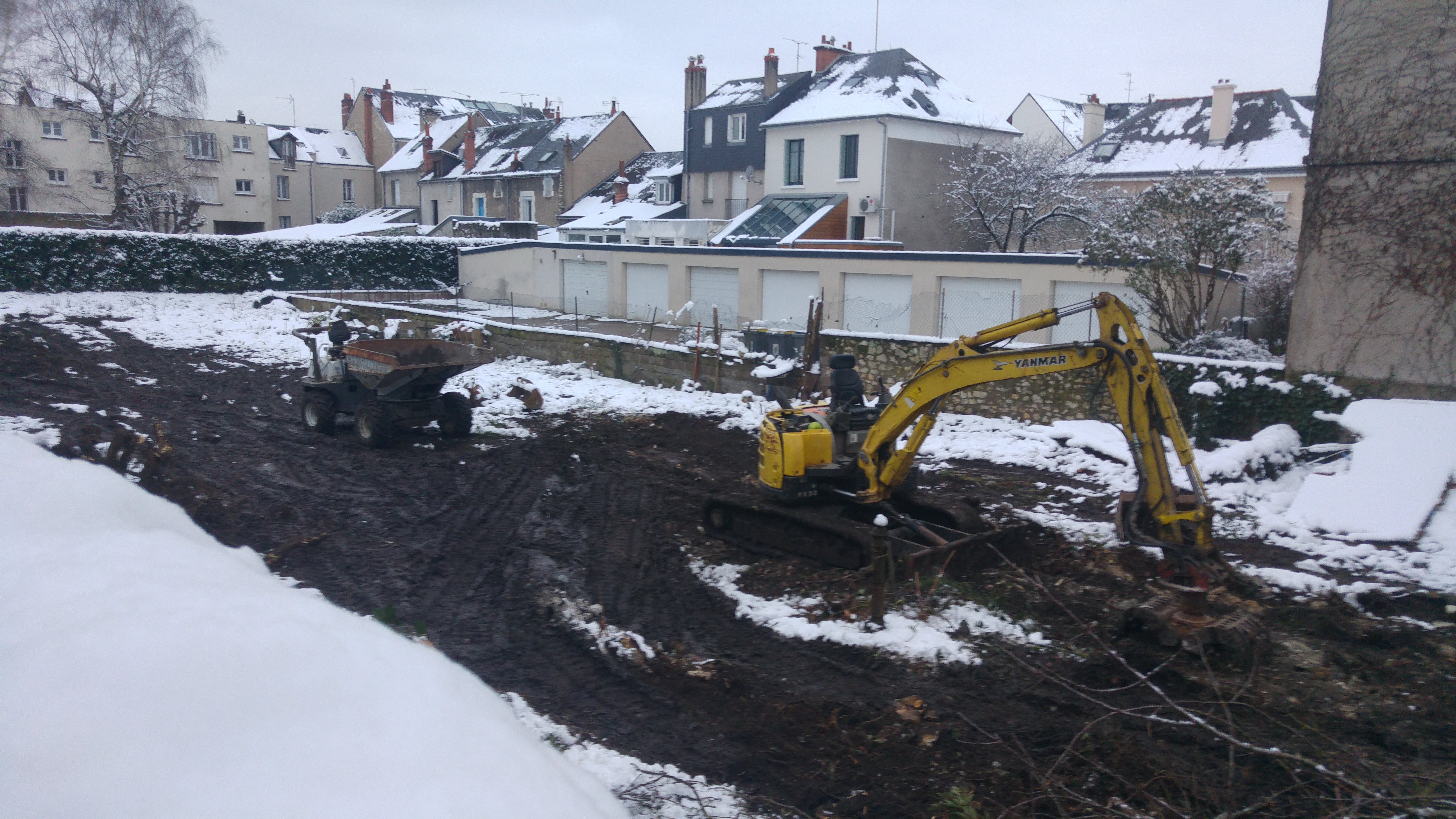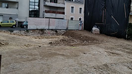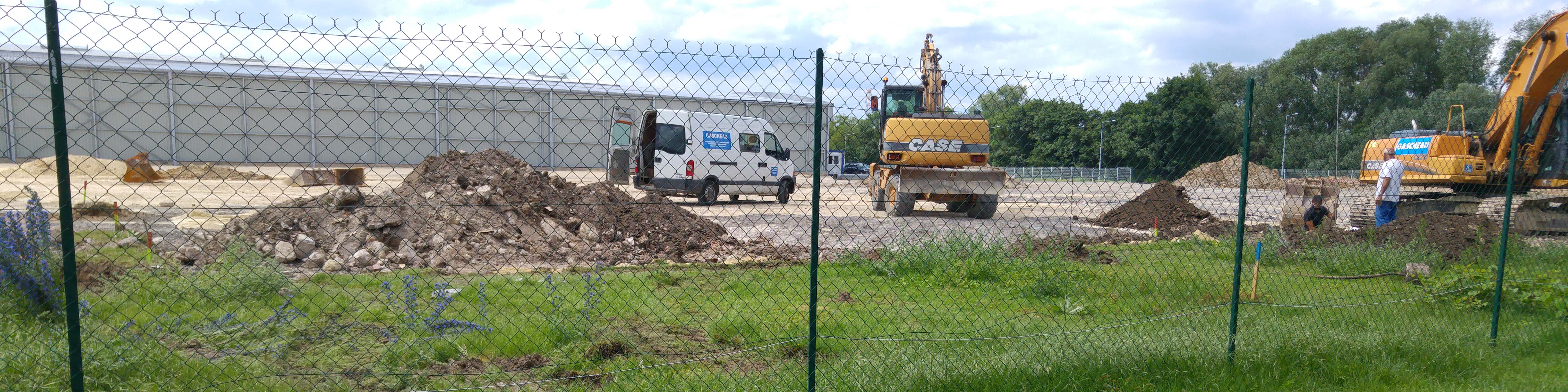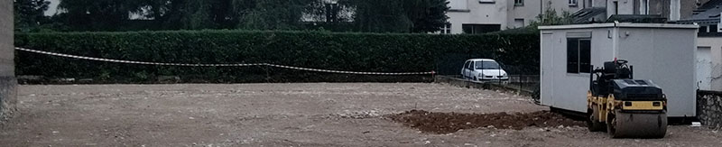 Photos du 12 décembre 2019. Au milieu du sol artificialisé, il resterait, d'après le permis de construire, le petit rectangle ci-devant non-bitumé de terre végétalisée.