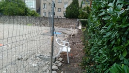 Parallèlement, comme s'il s'estimait toujours tout permis, le promoteur a d'une part aggravé une irrégularité, en élevant encore le terrain, atteignant peut-être les 1000 m3 de remblais (alors que seuls 250 ont été déclarés en 2018), et, d'autre part, a commis une nouvelle non-conformité, élevant un mur qui oblige les passants à un détour qui n'était pas prévu en 2012.