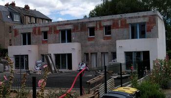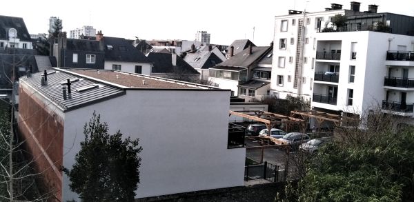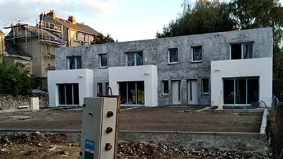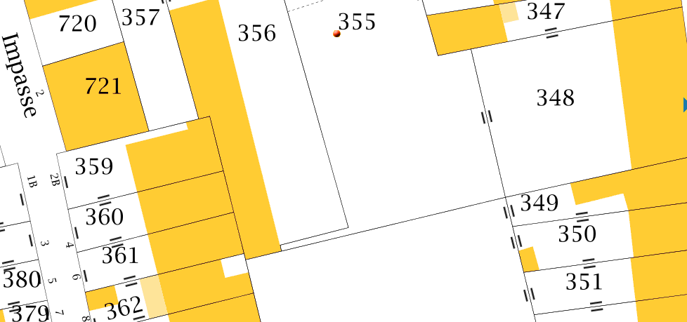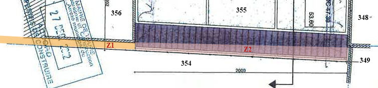 - Un empiétement supplémentaire sur le terrain voisin (parcelle 354). Sur une vingtaine de mètres de longueur, la gouttière des maisons mord de quelques centimètres supplémentaires sur la propriété voisine. En attendant l'épaisseur de l'isolation extérieure et de l'enduit.