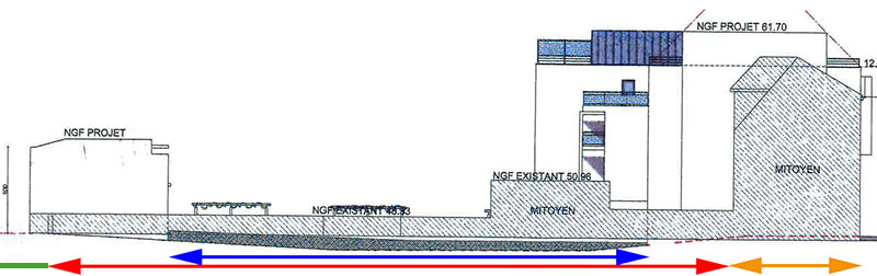 Les cotes indiquées sont complètement différentes de celles des coupes précédentes. Ici un remblai très important