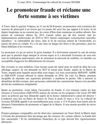 - 20 mars 2017 : deux riverains déposent devant le procureur de la République de Tours une plainte pour escroquerie au jugement (en premier lieu les temoignages suspects).
