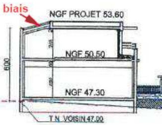 permet d'obtenir une hauteur de maison de 5,50 mètres, tout de même trop haute puisque le terrain étant surélevé de