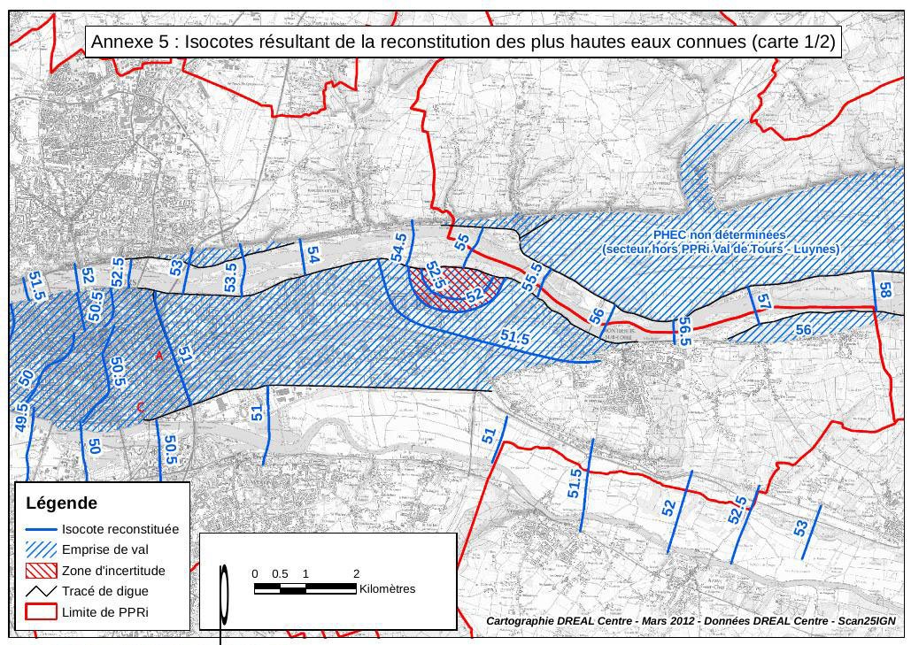 connues. Elle est en effet passée à 50,80 m en 2012 (carte de mars 2012, point A). C'est une illégalité 3. La mairie le savait avant l'acceptation du permis, elle a laissé faire et persiste encore en 2017, malgré un PPRI alarmant en 2016, mettant ainsi volontairement