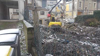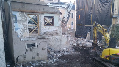 Le 5 novembre a commencé une démolition importante des trois maisons en fond de terrain avec suppression du toit et d'une partie de la façade. Puis, à partir du 18 novembre a commencé une surélevation de 1 mètre environ.