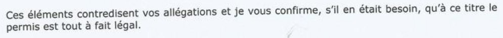 - 14 mars 2017 : la mairie, par la voie de M. Massot, adjoint aux affaires juridiques, confirme les valeurs de cotes prouvant la fraude, mais de façon inexplicable (voir extraits ci-dessous) estime que tout serait légal.
