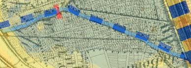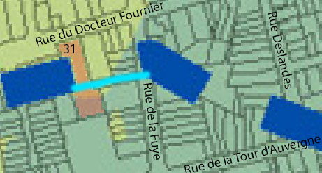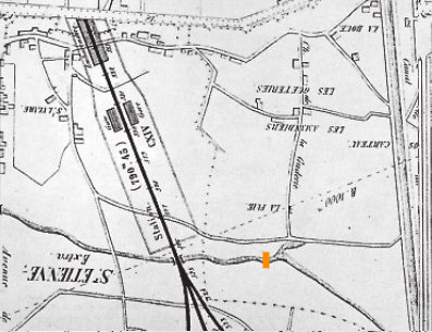 Liens : carte de la rue Edouard Vaillant à gauche en bas à la rue Deslandes à droite, la même avec indication du ruisseau.