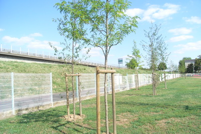 Suite aux questions que j'avais posées au CVL-Est et suite à une réunion du 7 octobre du groupe de travail du CVL-Est sur la qualité de l'air, le service municipal des espaces verts a présenté un projet d'arborisation d'une plate-bande gazonnée d'une longueur de 100 mètres environ, située ferrière l'école Raspail, dans le quartier de Beaujardin, dans la partie nord de l'autoroute non bordée d'arbres (zone N).