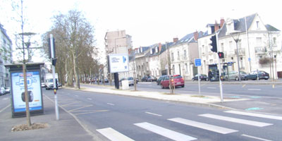 Voici le rond-point Heurteloup, là où sont prises les mesures de pollution. Il n'y a aucun arbre sur le rond-point (ceux de derrière sont sur St Pierre des Corps), presque pas sur le grand terre-plein bitumé. Et pourquoi l'avoir bitumé, alors que personne n'y passe ?