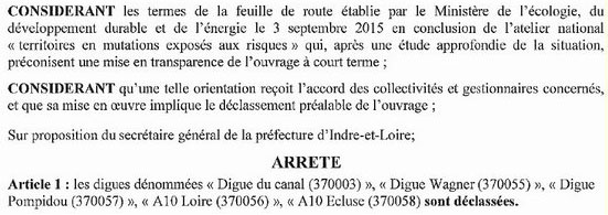 Extrait de l'arrêté de déclassement des digues du Canal, Wagner et autres.
