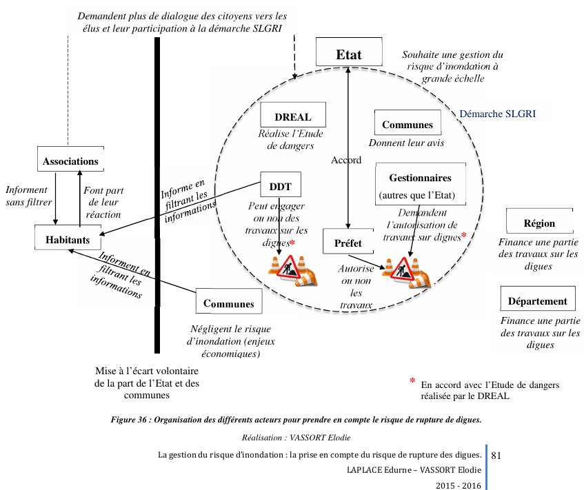 Edurne Laplace et Elodie Vassort, deux étudiantes de l'école Polytech' de Tours, département Aménagement et Environnement, on réalisé en 2015-2016 un projet de fin d'étude titré "La gestion du risque d'inondation : la prise en compte du risque de rupture des digues". Les entretiens qu'elles ont réalisé avec les différents acteurs sont significatifs. Extraits des 95 pages du rapport de ce projet :
