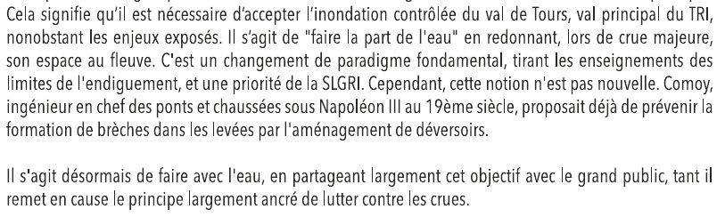 - Il est nécessaire d'accepter l'inondatoin contrôlée du val de Tours [comme si on pouvait contrôler une inondation !]