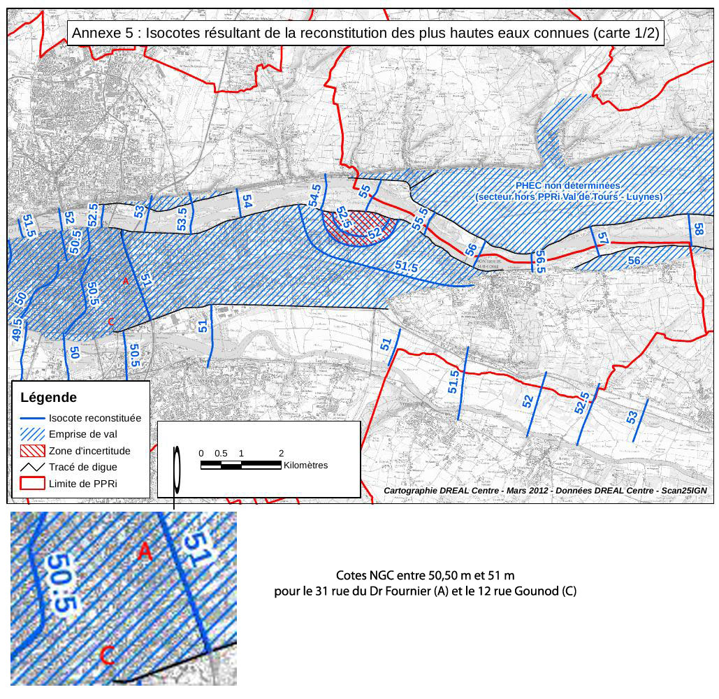 Tours, le 29 avril 2015 Suite à mon courrier du 20 janvier dernier et à la récente réunion publique du 23 avril, non seulement le mot "concertation" (qui est censé caractériser la période dans laquelle nous sommes) est inapproprié, mais il ne semble même pas y avoir une "écoute". Je vais donc parler plus fort et reprendre ce courriel sur mon blog, sous le titre "Les experts dans leur bulle". Déjà en janvier, le simple fait de vous envoyer un message email en demandant un "accusé de réception" et de ne rien recevoir était significatif. La récente réunion a montré qu'en plus il n'y a pas eu de prise en compte des sujets que j'ai soulevés et que je reprends, en les étayant davantage. Les ruisseaux enterrés de la Dolve et de l'Archevêché Comment se fait-il donc qu'en 1999 la présence de ces ruisseaux était un élément indispensable d'un permis de construire et que maintenant, alors que le danger est réévalué et estimé plus précisément, ce n'est pas mentionné ? Pourtant la cinétique de l'inondation de 1856, présentée le 23 avril, montre que l'inondation se répand en suivant le ruisseau de l'Archevêché du quartier Velpeau au jardin des Prébendes. Pourtant de fortes pluies, comme en 1910, sans débordement de la Loire et du Cher, ont provoqué des inondations dans le quartier Velpeau, notamment autour du ruisseau de l'Archevêché. Comme je l'ai déjà signalé : "J'habite à côté du ruisseau de l'Archevêché et des caves ont été inondées par deux fois ces six dernières années, alors qu'il n'y a eu aucune inondation et qu'il y a, pas loin, un grand bassin de rétention d'eau. En hydrologie, cela s'appelle des thalweg et quel que soit la façon dont ces cours d'eau ont été corsetés ou détournés, il reprennent leur position d'origine en cas de grosses crues". Va-t-on signaler ces ruisseaux sur les cartes de risques d'inondation ? Va-ton continuer à délivrer à Tours des permis de construire sans signaler la présence d'un ruisseau enterré ? Des cartes très précises sur d'autres aspects ont été élaborées, cet oubli est incompréhensible. La digue de l'autoroute A10 (digue du canal) Le 23 avril, je me suis exprimé sur de la digue de l'autoroute, anciennement digue du canal. Je savais que son déclassement est en cours d'être acté. J'ai reconnu que cette digue apparaissait fragile (encore faudrait-il le prouver…) et que compter sur elle s'avèrerait dangereux pas la création de forts remous lors de sa rupture. Mais toutes les crues n'en arriveraient pas là, certaines moins fortes pourraient être arrêtées. Entre garder la digue et la supprimer, une demi-mesure pourrait éviter, comme en 1866, l'inondation des quartiers Est de Tours. J'ai donc demandé que des simulations soient faites pour trouver la hauteur la plus efficace à conserver. La digue fait 5 mètres de hauteur, retenir 2 ou 3 m d'eau permettrait d'éviter de grands dégâts dans les caves, sans s'exposer pour autant à de forts remous. C'est maintenant, avant l'enquête publique, qu'il faut effectuer ces simulations. D’ailleurs, compte-tenu de l’enfoncement du lit mineur de la Loire, la probabilité d’une surverse et même d’une rupture de cette digue n’est-elle pas sensiblement réduite ? La réponse de M. Bresson, directeur de la DDT, n'a consisté qu'à expliquer pourquoi la digue est dangereuse et doit être supprimée, sans parlé sur la demi-mesure que je souhaite. Puis, ensuite, sur un autre sujet, il a parlé d'autres digues où sont mises en place des "surverses programmées" qui semblent correspondre à ce que j'ai exprimé : garder la digue, mais ne pas laisser monter l'eau jusqu’en haut de la digue et la déverser à partir d'une certaine hauteur de remplissage. Pourquoi ne le ferait-on pas là ? L'invalidité de certains permis de construire délivrés par la mairie de Tours La mairie de Tours délivre des permis de construire sans prendre en compte toutes les contraintes liées aux risques d'inondation, nonobstant les contraintes du SDAGE et les mises en garde du préfet de région. Ainsi, quartier Velpeau, au 31 rue du Dr Fournier, elle a délivré, fin 2012, un permis de construire qui cumule les anomalies. Il s'agit de construire un immeuble et trois maisons de ville :
