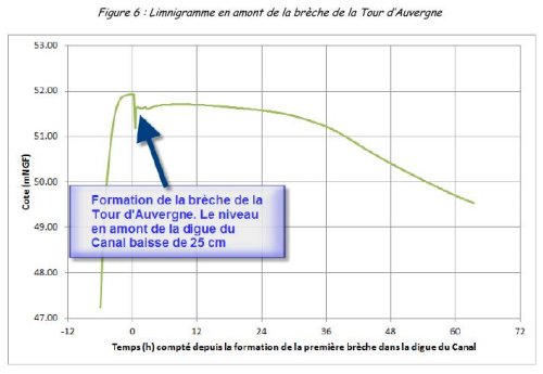Ces deux photos (cliquez dessus pour les agrandir) ont été prises le 6 juin 2016, au plus fort des inondations de ce mois là, à la Gloriette, route de Savonnières, alors submergée par les eaux du Cher. Le terrain de la seconde photo est celui situé à droite de la première, appartenant à l'entreprise Berthault. Des pelleteuses sont en train de le rehausser. Comment se fait-il qu'on remblaie à cet endroit alors que c'est très certainement interdit ? Ces deux exemples tendent à montrer que, ces dernières années, il y a eu des passe-droits. Ne serait-il pas opportun de créer au sein de la métropole une "cellule de protection des inondations" à laquelle tout citoyen pourrait s'adresser et ayant un pouvoir d'action fort, jusqu'à la possibilité de retrait d'un permis de construire ? Cela permettrait notamment de signaler les remblaiements interdits. On ne devrait pas en 2018 autoriser des constructions neuves avec rez-de-chaussée habité dont le 1er étage est 70 cm sous le cote PHEC, comme cela a été autorisé en juin dernier par une autorisation Loi sur l'Eau de la Préfecture d'Indre et Loire pour le projet du 31 rue du Dr Fournier, déjà, cité. La cote PHEC, à 50,80 m n'est même pas indiquée sur ce dossier, les remblais sont scandaleusement minimisés, le ruisseau de l'Archevêché est ignoré... Avant de donner des leçons le prévention, la métropole de Tours devrait sanctionner ces passe-droits. Les laisser exister, en disant ne pas contrôler la véracité de ce que prétendent les promoteurs incite aux abus. Axe 5 Réduction de la vulnérabilité des personnes et des biens Cet axe est seulement en cinquième position sur sept. L'ordre est-il significatif ? Si oui, pourquoi est-ce relégué à un tel rang inférieur ? La sécurité des biens et des personnes ne devrait-elle pas primer ? Prendre en compte les ruisseaux enterrés Chacun sait qu'un ruisseau enterré peut, par très forts orages, se réveiller, reprendre son ancien cours à l'air libre et tout inonder (voir par exemple l'article du 10 juillet 2017 du Courrier de l'Ouest). Avant le laxiste PPRI de 2001, les ruisseaux souterrains de Tours, et en premier lieu ceux de l'Archevêché et de la Dolve, étaient systématiquement pris en compte dans les permis de construire (cf. NR du 12 mais 1999). Le PPRI de 2016, très sévère, a oublié de reprendre en compte ces cours d'eau et ne les a même pas pris en compte dans les "zones d'écoulement préférentiel", sans qu'aucune explication ne soit apportée. La situation est encore plus dégradée : il apparaît que la métropole de Tours et la Préfecture d'Indre et Loire ont carrément perdu le tracé précis de ces ruisseaux (pourtant archivé) pour s'appuyer sur des tracés presque rectilignes et déconnectés de toute réalité de la base de données du réseau hydrologique Carthage. Voir les écarts de tracé du ruisseau de l'archevêché sur cette page le chapitre du 28 octobre 2018, ou ci-dessous la carte du bon et du mauvais tracé, avec les trois points de repère A, B, C. Comment peut-on prétendre réduire les vulnérabilités quand on ignore à ce point certaines causes de vulnérabilité ? Une phrase comme "Donner les moyens aux entreprises de connaître le risque" perd tout son sens. Axe 6 Gestion des écoulements 6-3 Connaître le réseau hydrographique Voir ce qui est écrit au-dessus sur les ruisseaux enterrés. Une bonne connaissance de ce réseau demande à s'appuyer sur des sources sérieuses et non sur une base de sonnées approximative, comme Carthage dont l'inanité est pourtant évidente quand on considère qu'elle fait naître les ruisseaux de l'Archevêché et de la Dolve sous l'autoroute A10 ! 6-4 Entretenir le réseau hydrographique Quelles mesures pour un entretien efficace ? Obliger la prise en compte des données hydrographiques (aussi les sources sur Tours Nord, par exemple) dans l'adoption des permis de construire. Et comme dit précédemment, permettre aux citoyens de s'adresser à une cellule Prévention des inondations, pour combattre le laxisme des mairies dans leur délivrance des permis de construire. Elle ne sont pas neutres et sont financièrement intéressées à construire. Cela ne les incite pas à appliquer les règles de prévention. Une cellule dédiée serait davantage impartiale. 6-5 Rétablir le bon fonctionnement hydraulique du Cher dans sa traversée tourangelle Comment peut-on prétendre "clarifier les enjeux" quand on ne prend même pas en compte les crues de retour (appelée aussi "par l'aval", quand les eaux remontent les lits, tant le terrain est plat), alors que c'est le scénario n°2 de l'étude de dangers DREAL 2013 ? C'est incompréhensible et ça jette un discrédit sur ce PAPI (avec aussi les ruisseaux enterrés, les manques de contrôle...) 6-9 Rendre transparent les obstacles aux écoulements "Mettre en transparence la levée de l'ancien Canal au droit du secteur Zamenhof" : là ça devient carrément dangereux. D'abord, c'est méconnaître les données de l'étude de dangers DREAL 2018 (voir notamment son évaluation par l'AQUAVIT) et c'est s'appuyer sur des informations incorrectes d'une feuille de route d'un atelier national "Territoires en mutation exposés aux risques – Val de Tours Saint Pierre des Corps" incompétent en risque d'inondation. Cet atelier, considéré comme référence par la préfecture qui suit ses recommandations, a décidé que la digue (levée) du Canal est dangereuse et inutile, alors que l'étude de 2013 indique qu'avec ses 5 m de hauteur, de 48 m à 53 m, elle ne céderait que lorsque l'eau approcherait de la cote 52,00 m, comme le montre ce schéma :
