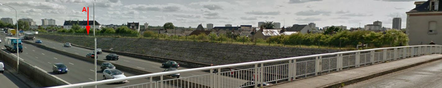 A gauche, rue Jules Tashereau, l'autoroute est plus haute que la digue.