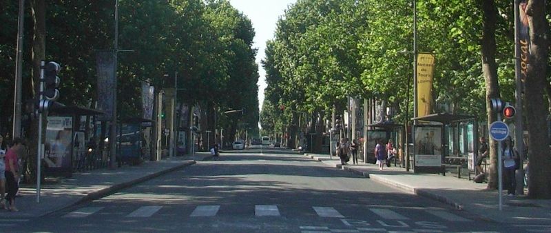 Au passage, je me suis rendu compte que j'ai fait un oubli dans mon étude de juillet 2010, car je n'ai pas compté 3 platanes qui sont prévus d'être abattus (et 2 plantés). Ils sont situés entre la station Charcot et le carrefour de Verdun, voyez les trois croix rouges :