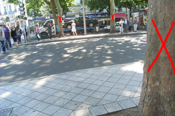 Une fois de plus, les arbres vieux dérangent, il vaut mieux les remplacer par des jeunes plus malléables, qu'on pourra rechanger ou déplacer un peu plus tard... J'estime que les explications données ne sont pas convaincantes. Etant donnée la configuration des lieux, je ne vois pas plus qu'avant pourquoi les arbres dérangent (le lecteur pourra se reporter aux schémas ci-dessus). J'ajoute que tous les arbres ne sont pas à hauteur de la station et ceux qui n'y sont pas (du côté de la rue Charles Gille) ne semblent pas sauvés pour autant.