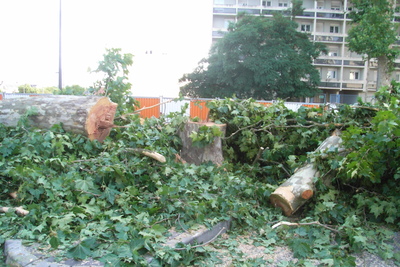 Les deux derniers abattages ont eu lieu hier soir, entre 21 heures et minuit. Comme la veille, l'entreprise "Gabriel Espaces Verts", avec son bourreau exécuteur des basses oeuvres, a accompli, dans des conditions de sécurité minimales, la sentence municipale et tué ces deux derniers platanes qui ne gênaient pas du tout le tramway. La raison n'en a jamais été publiquement déclarée, c'est le propre de l'arbitraire. Pourtant, les Tourangeaux, s'ils avaient pu se prononcer, s'y seraient massivement opposés.