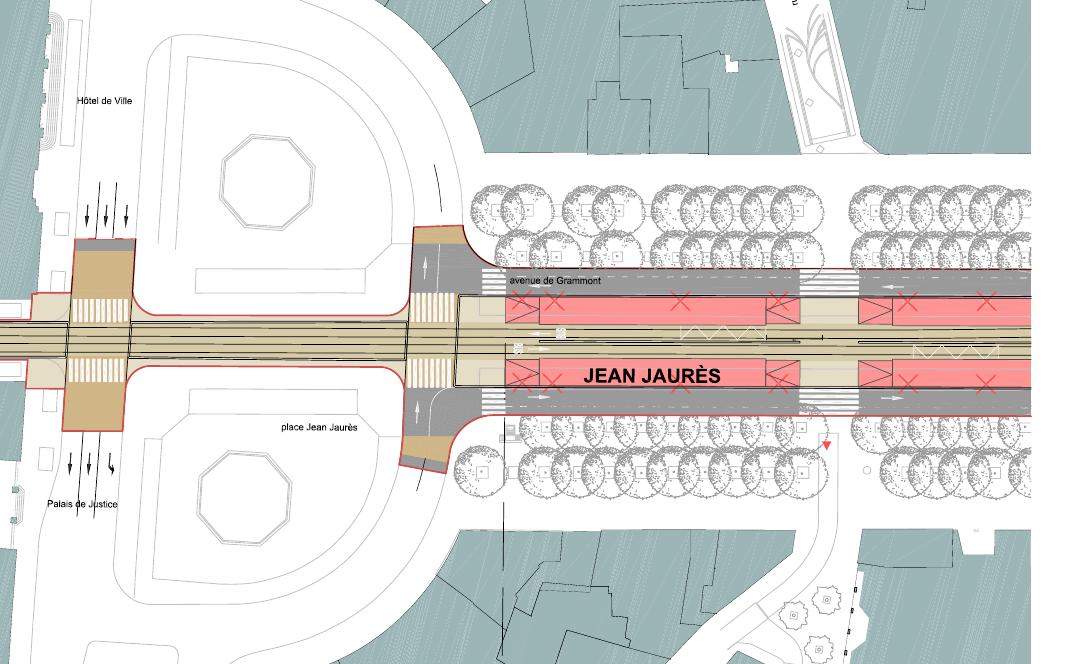 Je lis dans l'étude d'impact (E4 "Effets", page 69) : "A l'entrée de l'avenue de Grammont, l'élargissement des voiries entraînera l'abattage de quelques jeunes plants de platanes situés entre la voirie et la voie de bus actuelle". Ca serait donc ça l'explication !