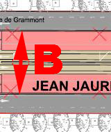 Considérons d'abord le cas de la station Jaurès. On verra que la situation est très proche à la station Charcot. Je note que ce sont les deux seules stations directement sur l'avenue de Grammont. Le positionnement des stations Liberté et Verdun a permis d'éviter deux autres trouées, raison de plus pour en éviter aucune.
