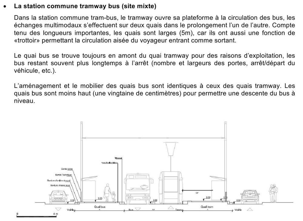 J'ai cherché dans le dossier technique sur les stations. Nous sommes (avec la station Charcot) dans le cas de "station commune tramway-bus (site mixte)", décrite ainsi dans le dossier d'impact (page 62) :