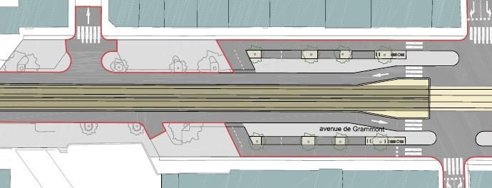 Deux trouées dans la coulée verte de l'avenue de Grammont