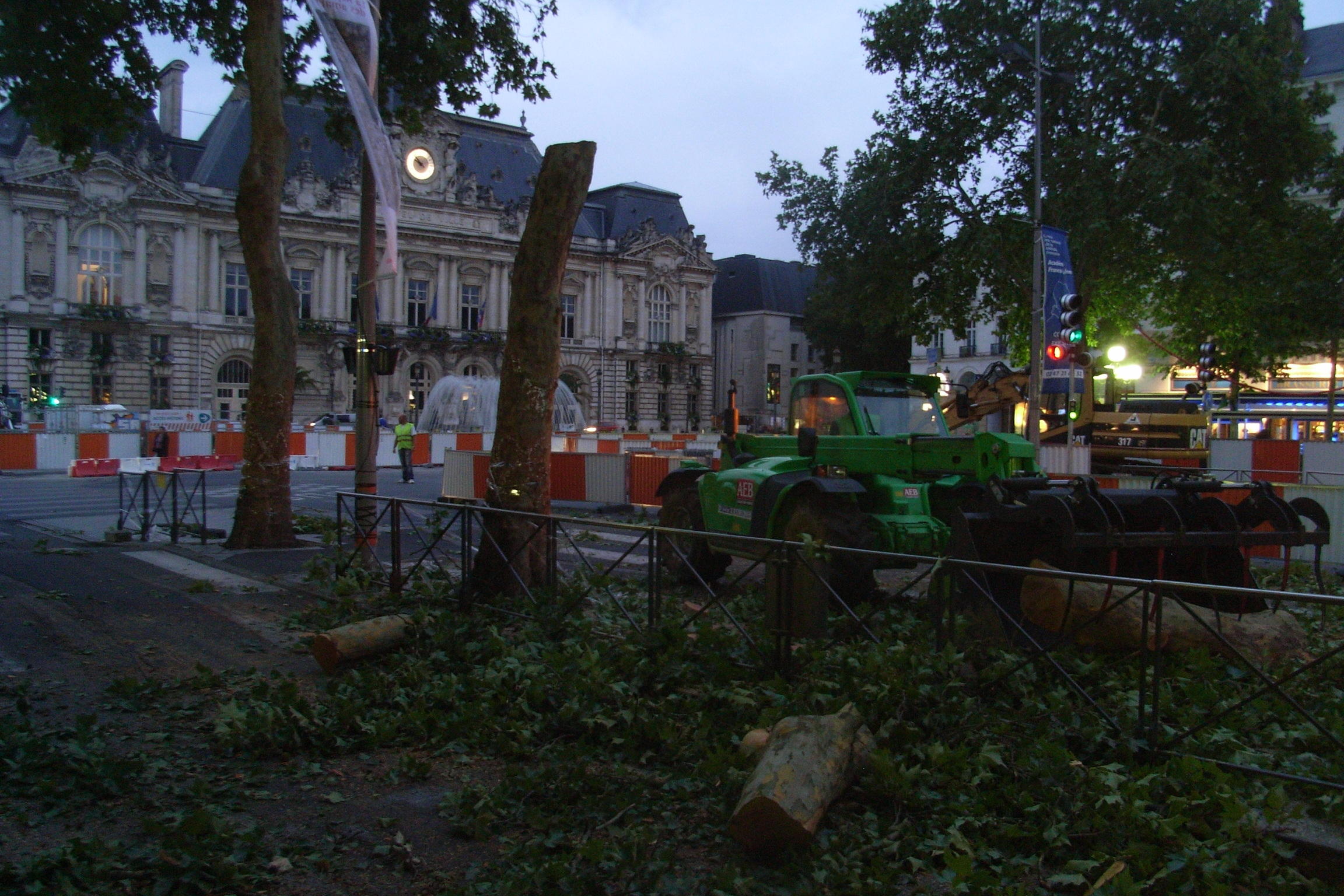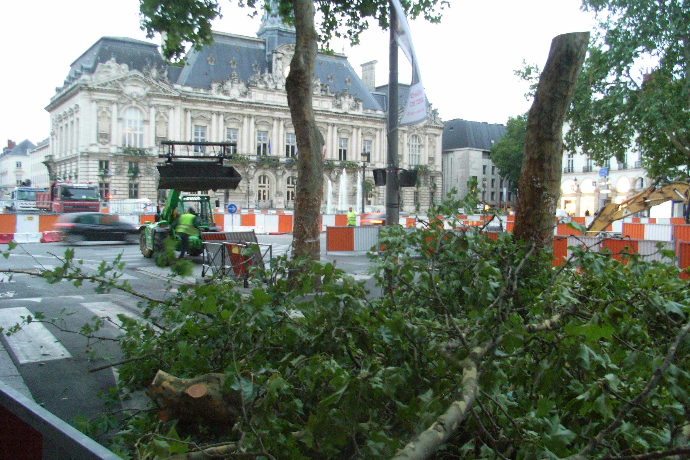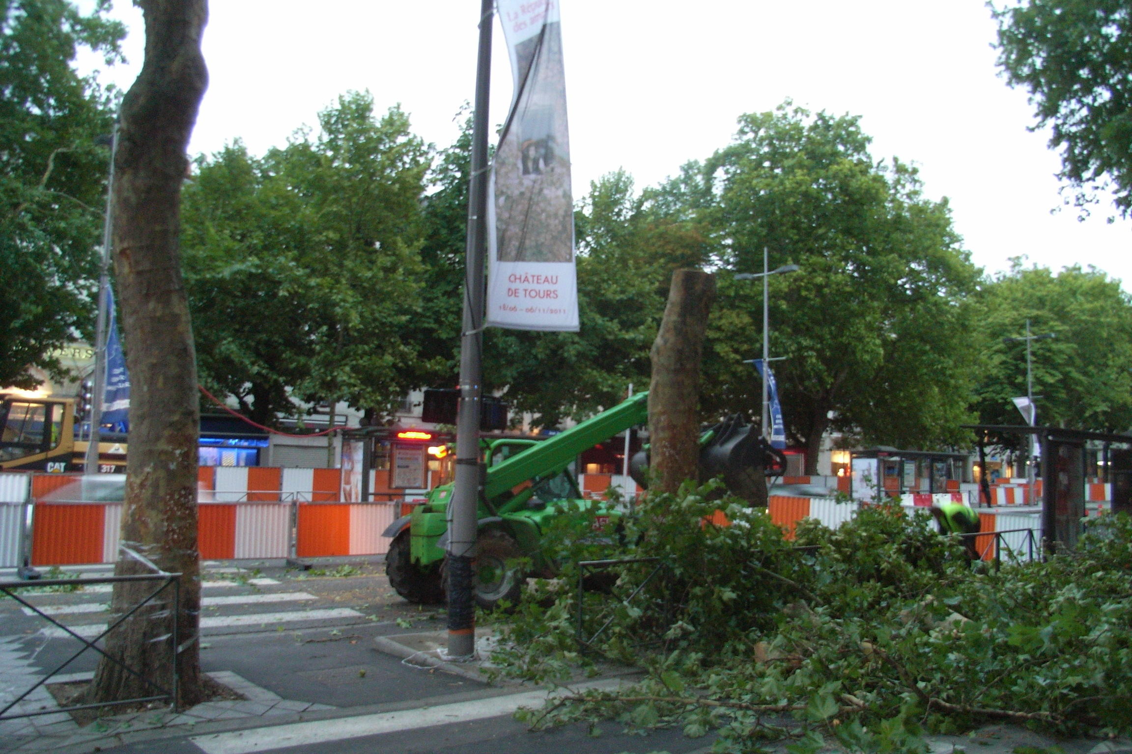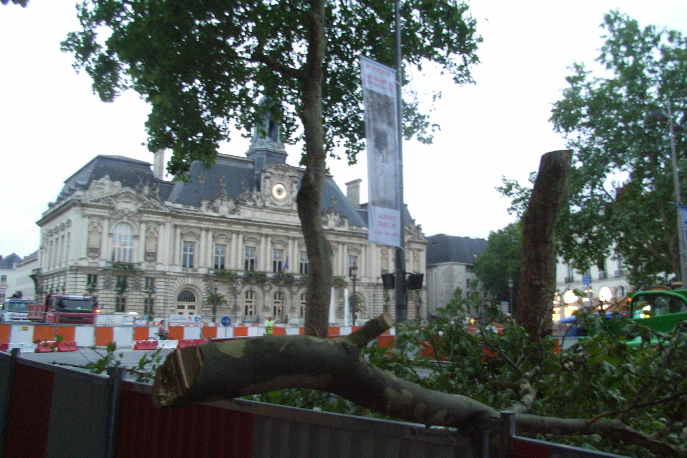 Tours, les arbres inutilement abattus par le tramway, juin-juillet 2011