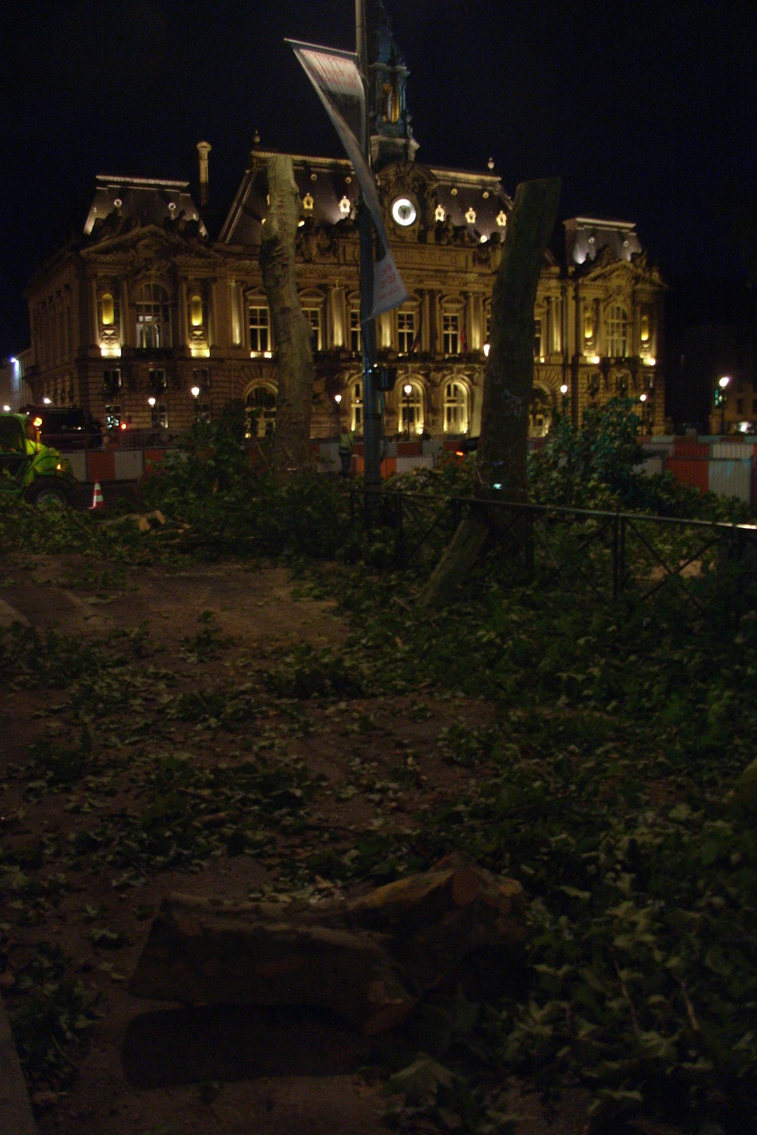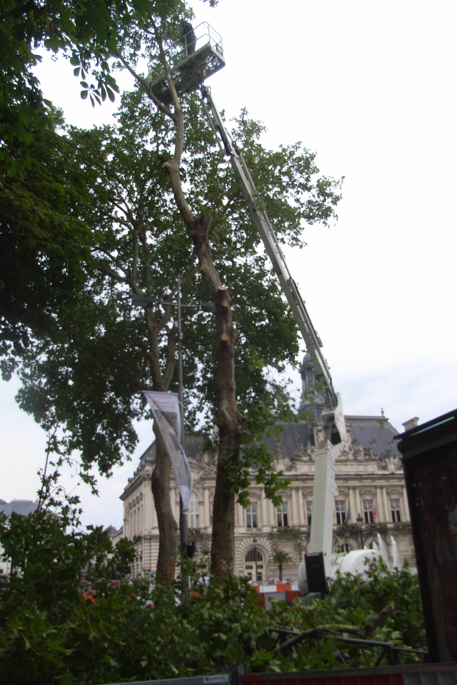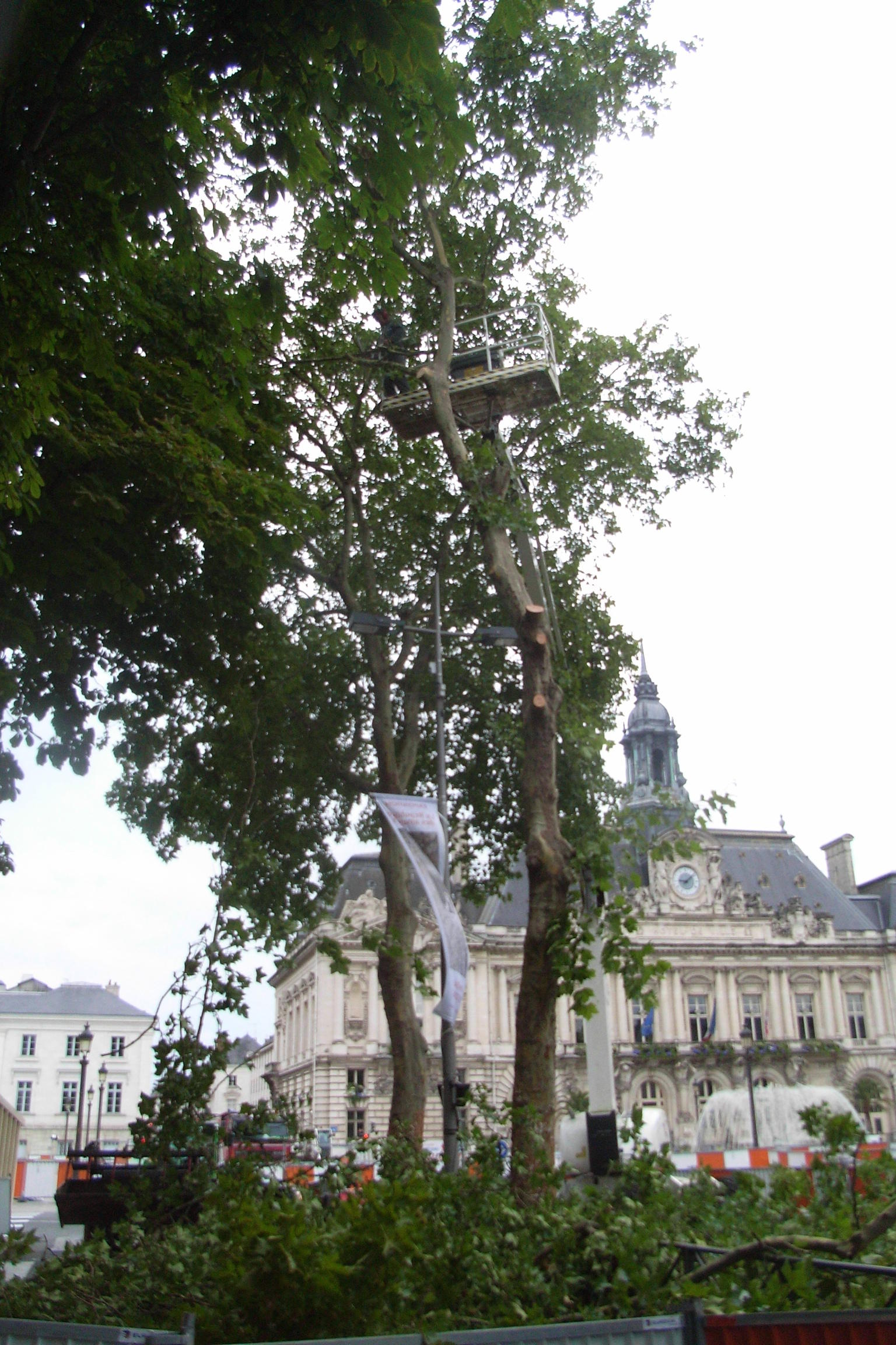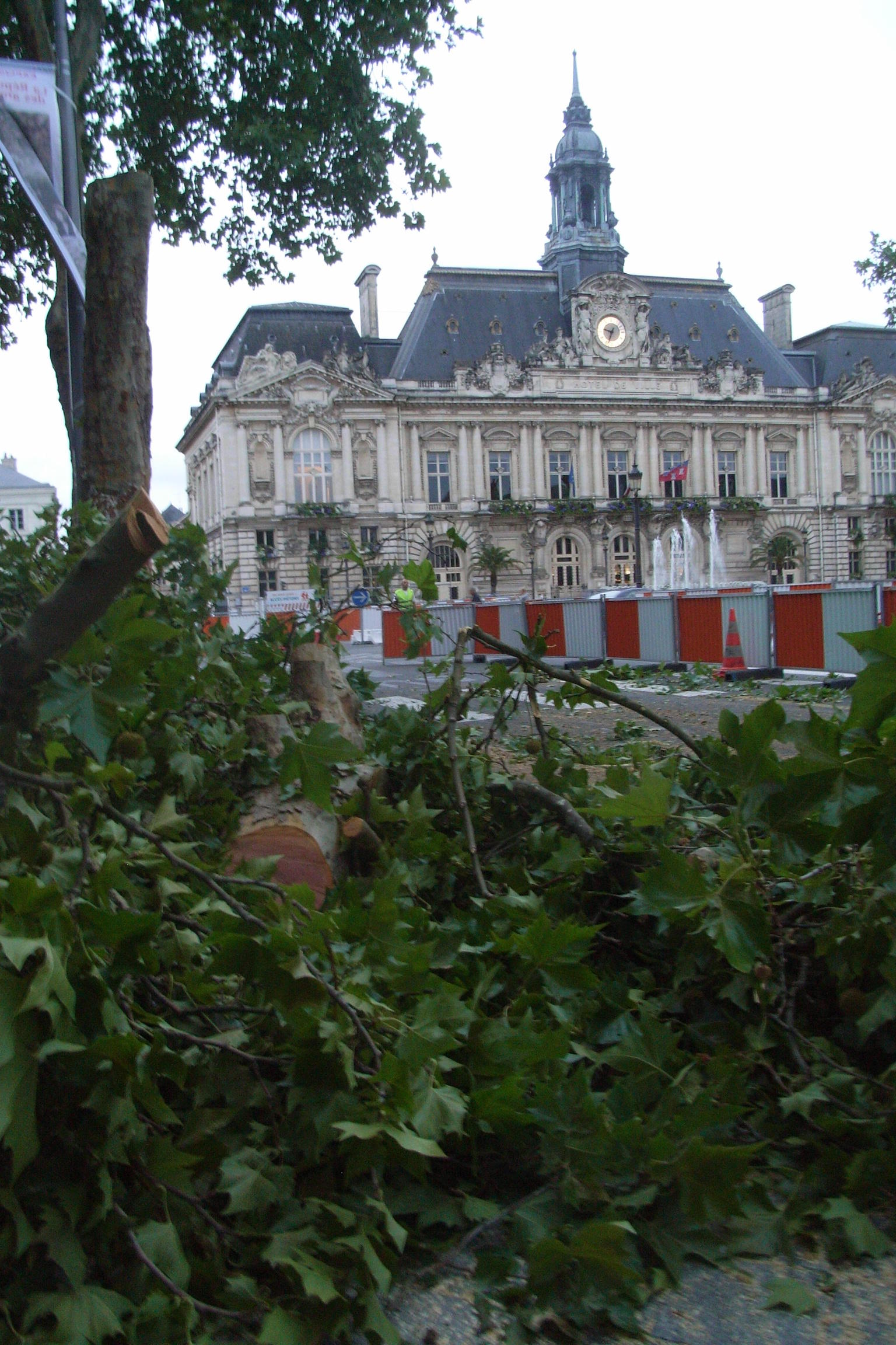 Tours, les arbres inutilement abattus par le tramway, juin-juillet 2011