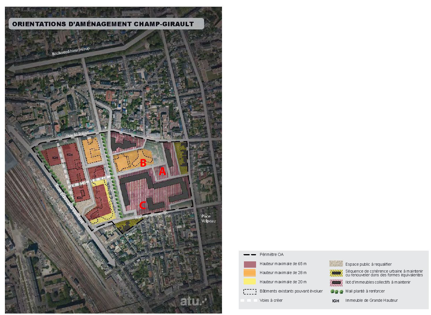 Plan OAP page 42. Là aussi, il y a de beaux arbres, et quand je vois l'importance des "espaces verst en coeur d'îlot à requalifier", je crains qu'il y ait trop d'abattages... Je souhaite très vivement aussi qu'il y ait une voie piétons - vélo (deux voies séparées où c'est possible) qui aille de la passerelle Fournier côté Ouest à la rue Parmentier par l'itinéraire le plus court possible, comme il y en avait un avant les travaux de destruction. Je rappelle que dans ce quartier, notamment au pied Ouest de la passerelle Fournier, il y avait naguère de très beaux peupliers et saules pleureurs, abattus pour la plupart sans raison valable. Ces arbres sont aujourd'hui bannis de la ville de Tours, on n'en replante plus. Serait-il possible de les réhabiliter ? Alain Beyrand, le 6 avril 2022 |