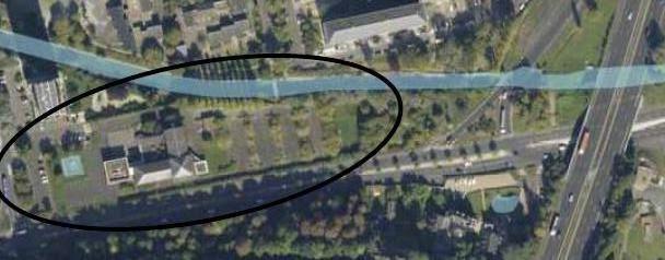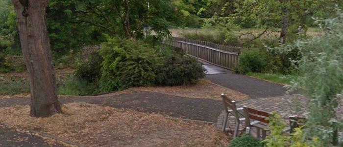 En 1986, dans un nouvel aménagement, on construisait une passerelle, même pour un usage restreint. En 2015, alors que la ville est censée privilégier les modes de déplacement doux, on ignore la présence d'une telle passerelle et on rechigne pour en construire ailleurs. Cette photo (de Google Street) montre combien l'orientation Petit Cher est plus plaisante que celle de la route de Saint Avertin (le projet Goya se situe au fond de la photo, de l'autre côté de la passerelle). |