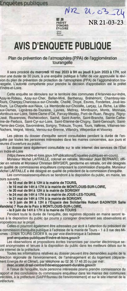 La consultation du dossier PPA 2023 sur l'agglomération tourangelle signale que "Comme le montre le tableau et figure suivants, le secteur du trafic routier est responsable de 70% des émissions de dioxyde d’azote sur le territoire du PPA de Tours. Ce secteur peut donc être considéré comme le principal levier d’action pour ce polluant." L'analyse ensuite tourne court. Comment agir pour diminuer sensiblement ces 70 % ? Quelle est la plus grosse cause de pollution sur laquelle on pourrait agir ? C'est très certainement, avec la traversée de plusieurs autoroutes, le transport routier longue distance de transit. Ce point essentiel m'apparaît gommé. Il est gommé depuis des dizaines d'années, si bien qu'aucune amélioration majeure n'a eu lieu et n'est envisageable. On connaît pourtant la solution : interdire le transport routier de marchandise longue distance et obliger à utiliser le transport sur rails. La compétence est nationale, ce PPA local est incompétent pour cette cause primordiale de pollution. Finalement, ce PPA n'est qu'une "obligation légale" comme il est écrit en début de dossier. C'est sa seule raison d'être. Pour le reste, il ne peut agir qu'à la marge. Il n'a même pas la lucidité de dire à quel point l'Etat français est responsable de la situation dégradée que la population endure. La part du fret ne cesse de diminuer, alors qu'une politique volontariste de diminution des pollutions l'aurait rendue prépondérante. Par ailleurs, page 75 : "L’action consiste à limiter la circulation des véhicules les plus polluants et de mettre en place la Zone à Faible Emission-mobilité (ZFE-m) de façon effective en 2025." Je suis opposé à une telle action basée sur une mauvaise appréciation de ce qui est considéré comme "plus polluant". La pollution de la construction d'un véhicule neuf est énormément plus importante que la pollution engendrée par un vieux véhicule. Vouloir renouveler le parc automobile est une politique anti-écologique et ultra-polluante, même si cette pollution est en dehors de la région tourangelle. C'est le type même d'action démagogique, irresponsable, cynique, qui ne peut qu'aggraver la pollution sur notre planète. Il nous faut sortir de la spirale du consumérisme forcené. A sa mesure, par cette mesure "MOB 1", ce PPA soutient la politique environnementale catastrophique où l'on nous entraîne, à coups de mesures en trompe-l'oeil. Comment voulez-vous que le citoyen devienne sobre, quand l'Etat et les collectivités locales montrent le pire des exemples en continuant à consommer toujours plus et en prétendant que c'est cela la sobriété ! Il convient de diminuer au maximum les ventes de véhicules et de les utiliser le plus longtemps possible. Pour consommer moins d'énergie et préserver les ressources naturelles, qui ne sont pas infinies. Je demande à ce que cette disposition "MOB 1" soit supprimée. Et aussi MOB 2 "Mettre en place la circulation différenciée en cas de pic de pollution" (il faudrait donner des bonus aux propriétaires de vieux véhicules et non des malus, sachant qu'un contrôle technique sur la pollution est en place) et bien sûr MOB 10 "Accélérer le renouvellement des flottes de véhicules". Je m'oppose aussi à MOB 11 "Densifier le maillage du réseau de bornes de recharges pour véhicules électriques" (les véhicules électriques sont une fausse solution, avec pollution nucléaire pour l'électricité et préemption polluante et irraisonnée de métaux rares pour les batteries). J'approuve les dispositions MOB 3 à MOB 9, RES 1 à RES 5, ECO 1 à ECO 6, OBS 1 à OBS 4. Et je répète avec force mon opposition à MOB 1, MOB 2, MOB 10, MOB 11. Alain Beyrand, le 8 juin 2023 |