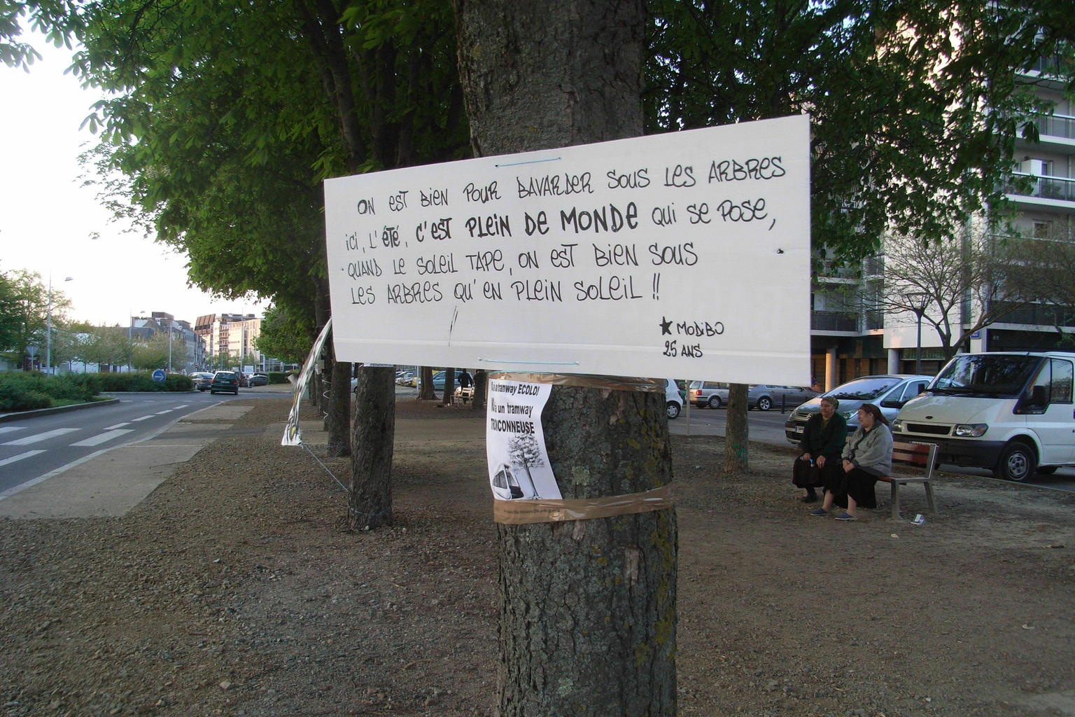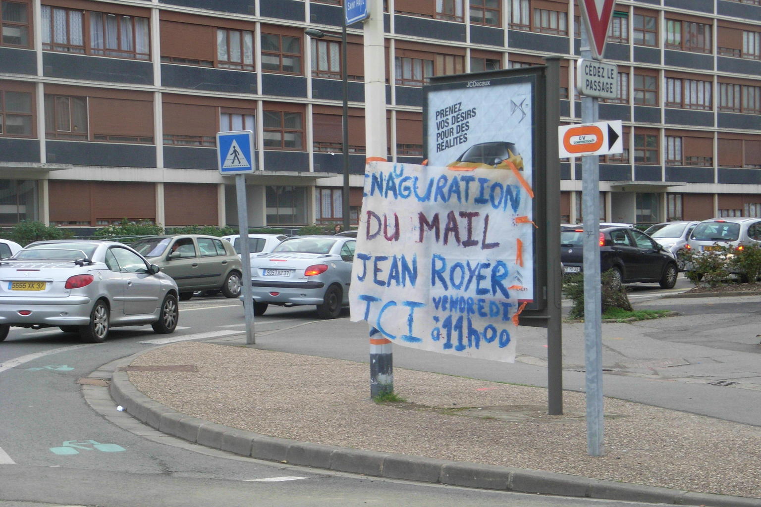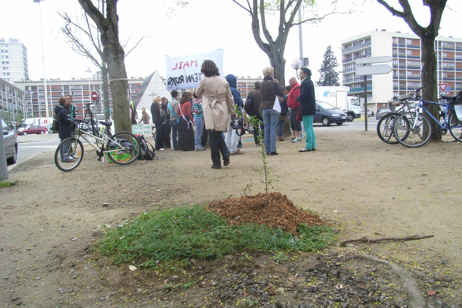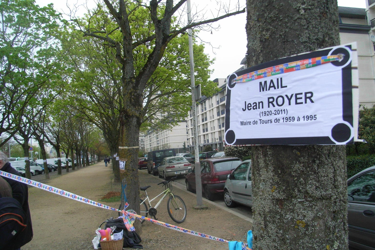 _09 C'est sur la droite du mail (côté ouest), à la place du parking en épi et du panneau que nous avions demandé que passe le tramway, idée reprise par les commissaires enquêteurs. Le tracé alternatif de 2009, lui, faisait passer le tram au milieu de la voie routière. |